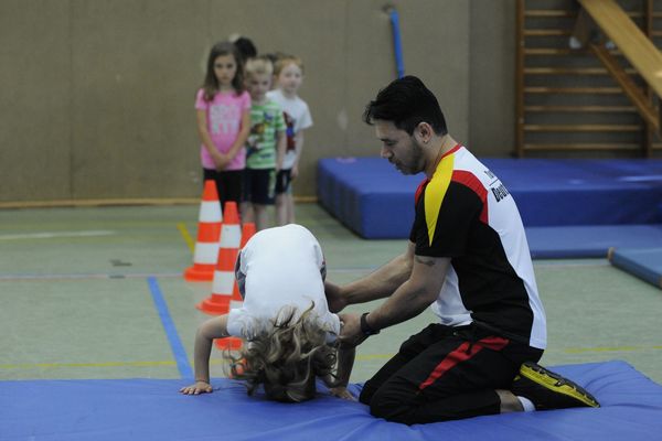 Ebenso interessiert wie vergnügt sammelten die Mädchen und Jungen dabei vielfältige Erfahrungen in den Sportarten Badminton, Floorball, Leichtathletik, Le Parkour und Tanzen und absolvierten abwechslungsreiche Übungen mit dem Fußball, dem Handball oder im Turnen.