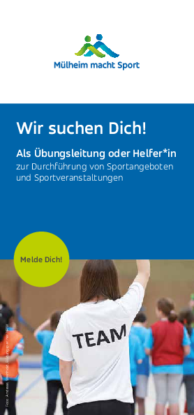 Neben unseren Vereinen suchen auch MSB und MSS nach Übungsleitungen: Du willst Dich im Sport engagieren, weißt aber nicht genau wo? Du bist als Übungsleitung in einem Mülheimer Sportverein tätig und willst Dich mit Deinem Verein an Projekten vom MSB und MSS engagieren. Dann nutze doch unsere Abfrage, die schon mal einen kleinen Überblick verschafft.