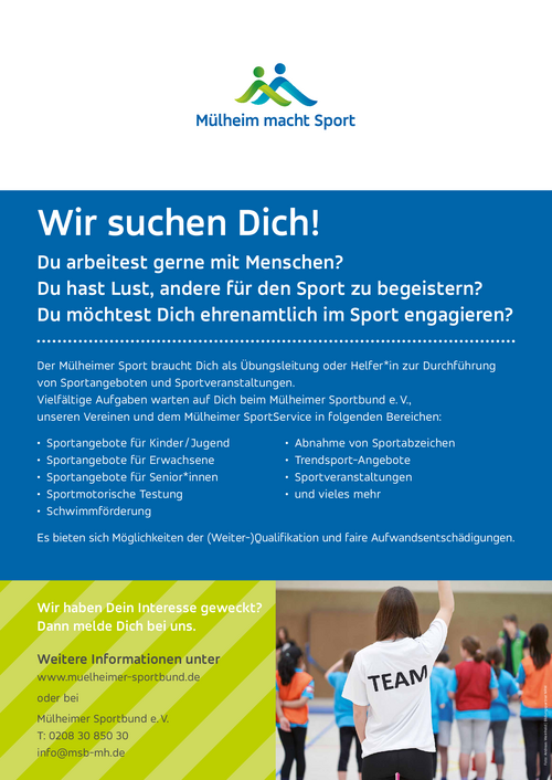 Hast Du Lust, Dich ehrenamtlich im Sport zu engagieren, damit wir diese Probleme aus der Welt schaffen können?
